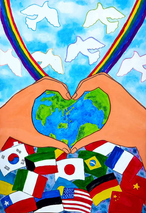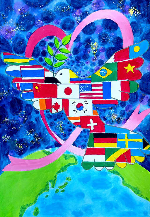 この絵画コンテストは、世界中の児童に平和へのビジョンを表現するよう奨励するもので長年にわたり世界中の国から何百万人もの子供たちがこのコンテストに参加してきました。各ポスターは独創性、芸術性、テーマの表現力について審査されております。